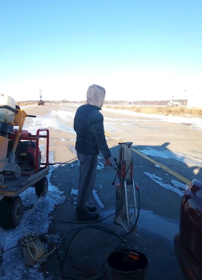 Цели и задачи: Бурение отверстий для взятия проб бетона со взлётной полосы