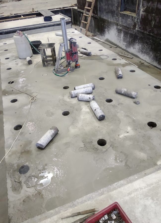 Основную сложность вызывало откалывание бетонных кусков внутри отверстия и удаление из них шлама.