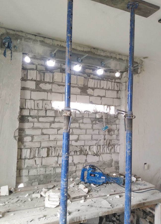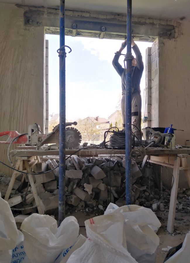 Цели и задачи: Вырезать оконный проём с предварительным усилением в несущей стене, со внутренними размерами 186x201 и внешними — 176x201.