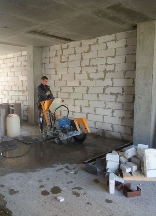 Особенности и впечатления: Застройщик принял решение выполнить перепланировку всех этажей, для изменения планировки квартир. В связи с этим решением потребовалась резка проёмов в бетонных стенах и перекрытиях – для вентиляционных и дверных проёмов. Нас пригласили как подрядную организацию для выполнения работ, связанных с алмазной резкой и сверлением.