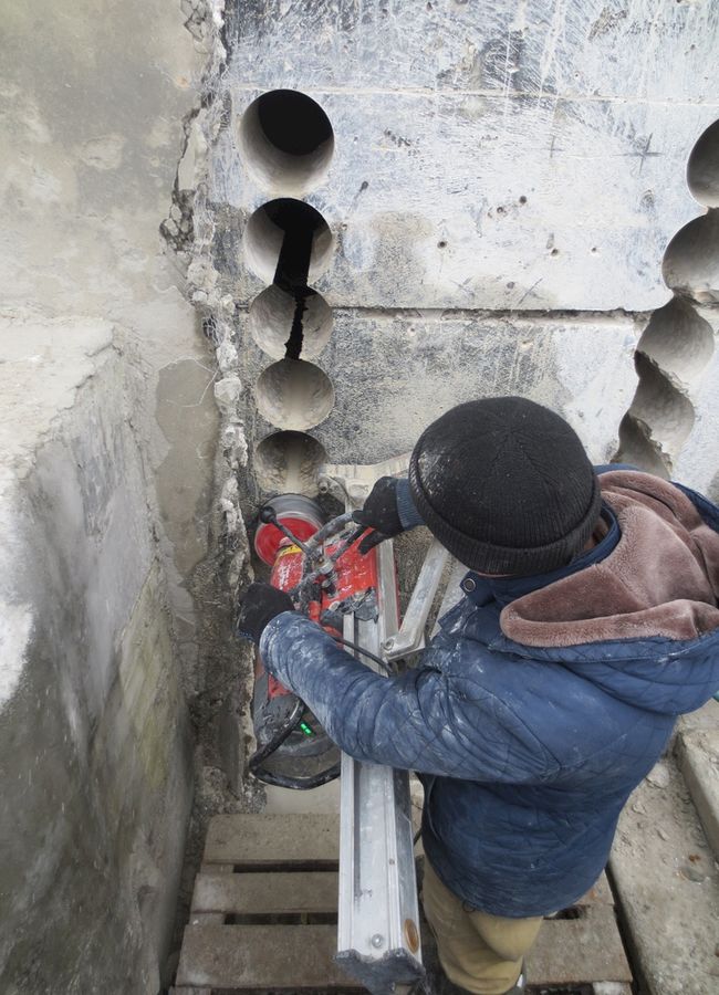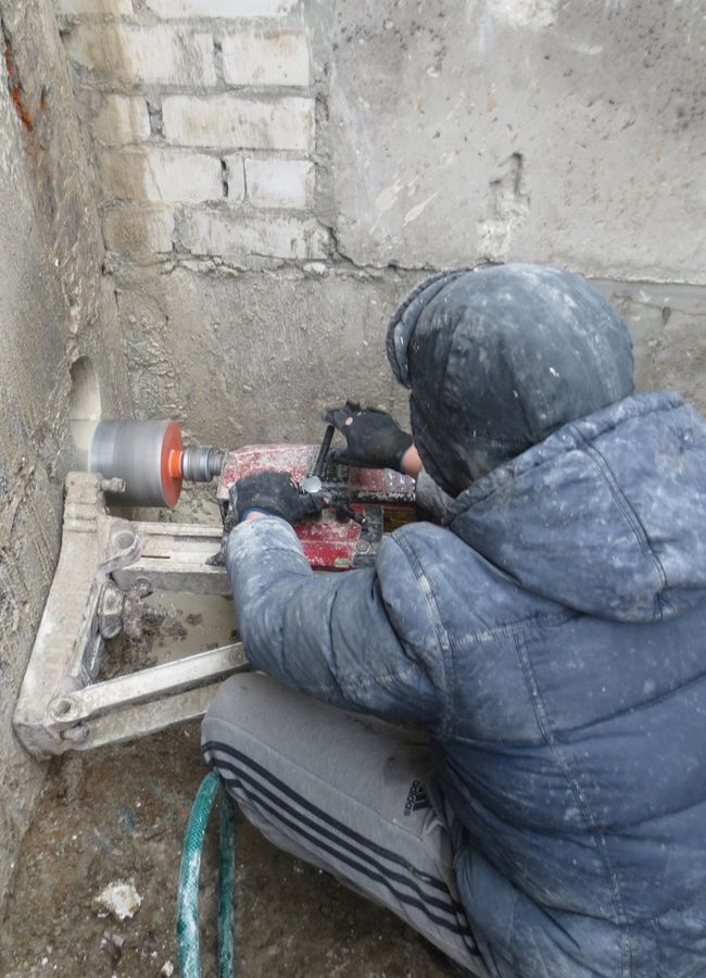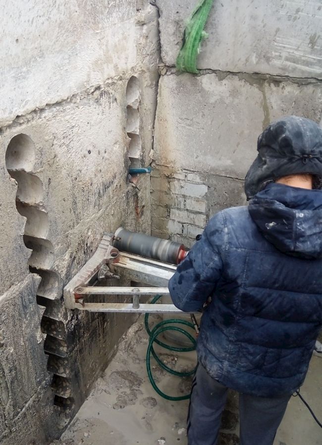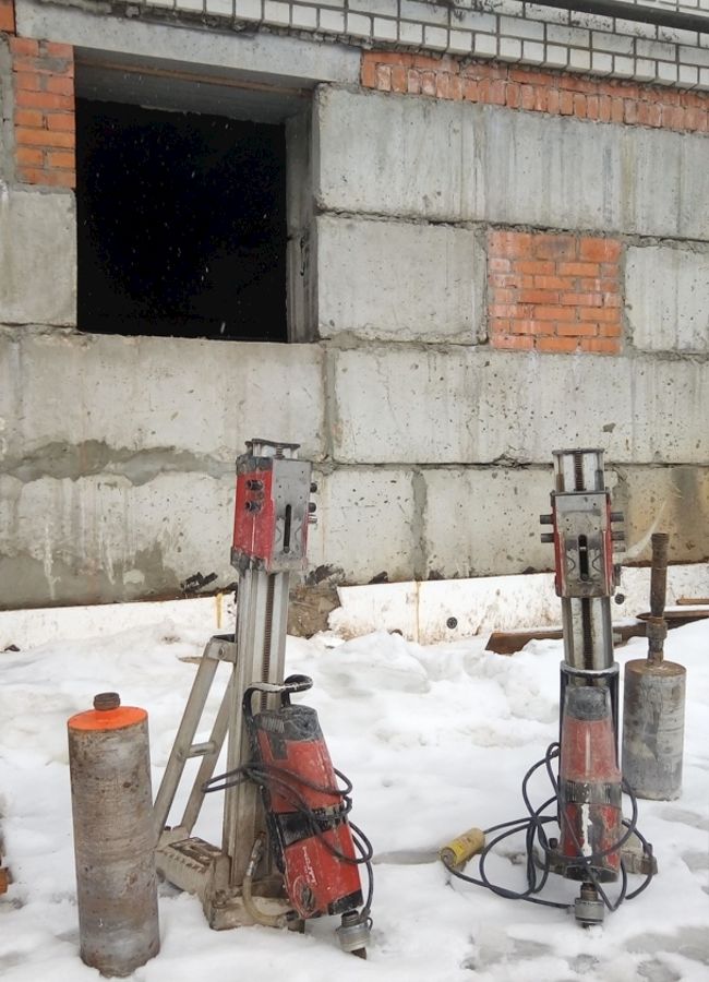 Цели и задачи: Сверление отверстий для монтажа систем отопления, водоснабжения и водоотведения. Выбуривание дверных проёмов в подвале жилого комплекса.
