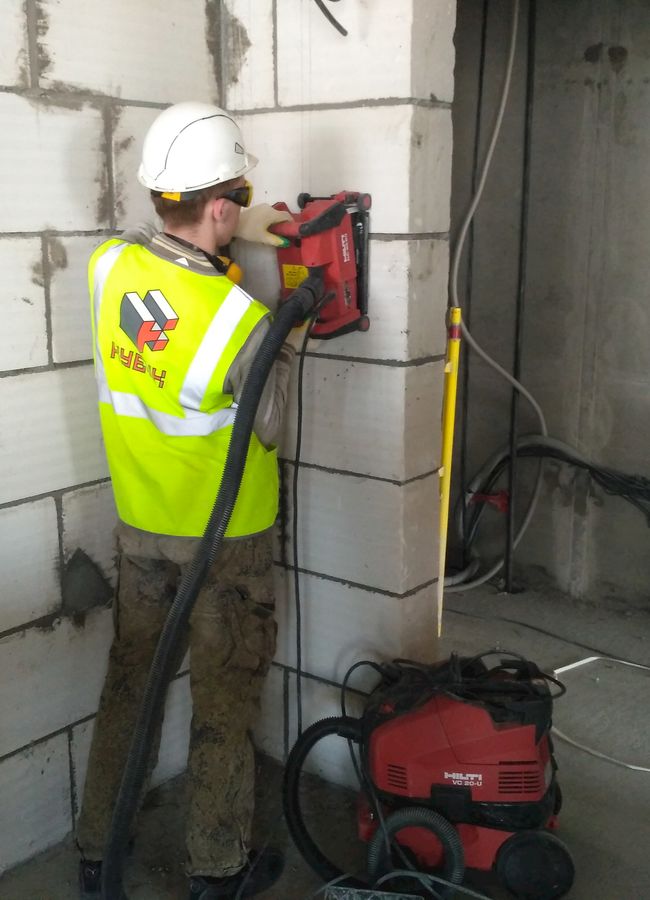 Предоставляем услуги по штроблению и сверлению отверстий для подрозетников. Работы выполняются профессиональным оборудованием, без пыли и сильного шума.